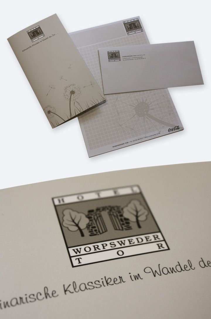 Entstanden bei attentus, Bremen: Geschäftsausstattung für das Hotel und Restaurant Worpsweder Tor