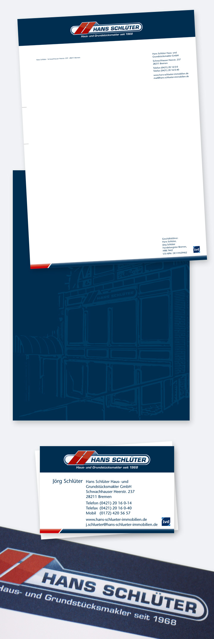 Entstanden bei attentus, Bremen: Neugestaltung des Logos und der Geschäftsausstattung von Hans Schlüter Immobilien